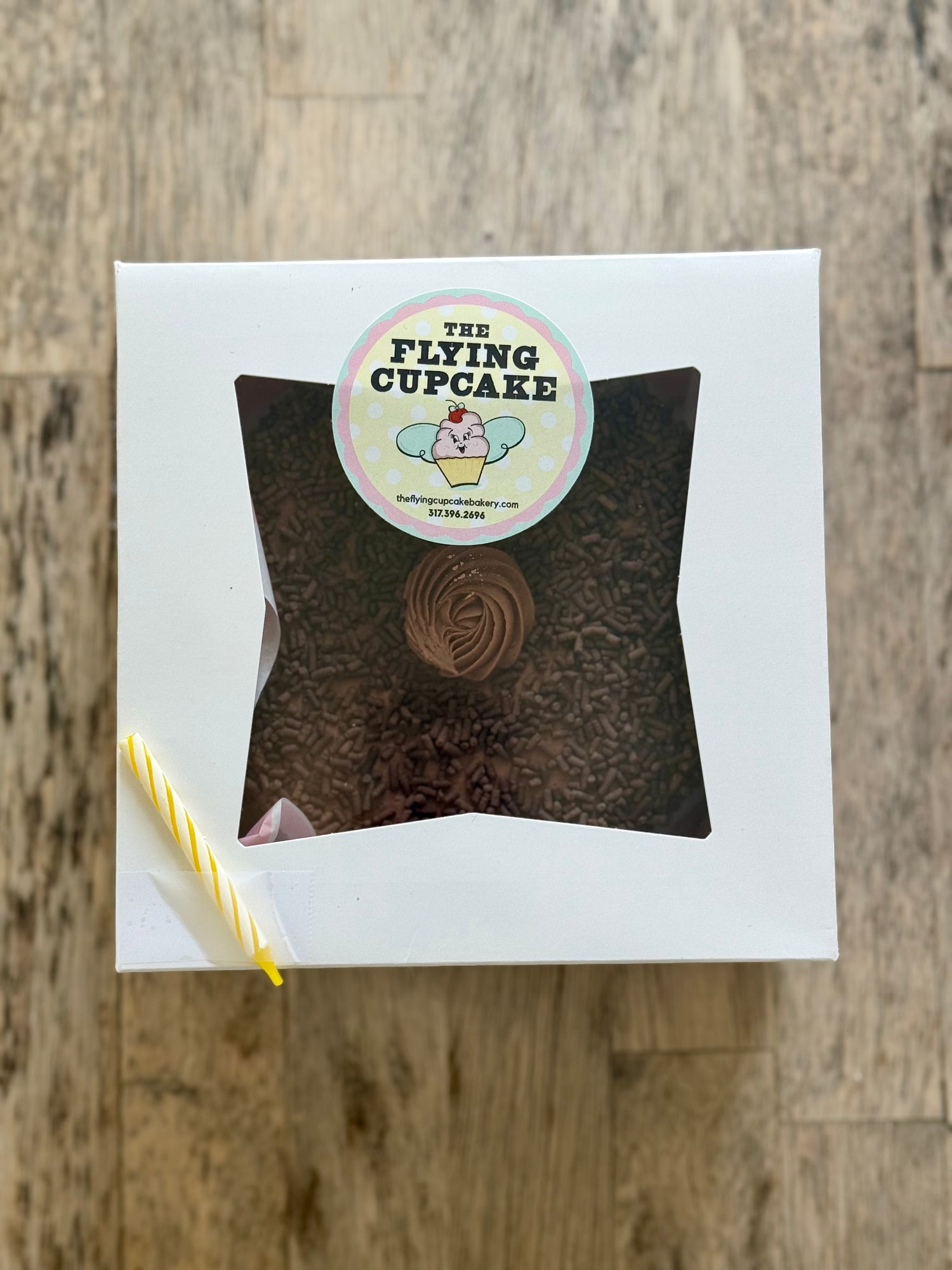 This 2 layer 5" round chocolate cake cake with chocolate buttercream and chocolate sprinkles will feed 1-3 guests and is the perfect sweet treat for any intimate birthday celebration!